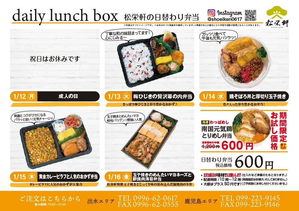 - 2025年1月28日お知らせ松栄軒について朝だ!生です旅サラダで当社のお弁当が紹介されました